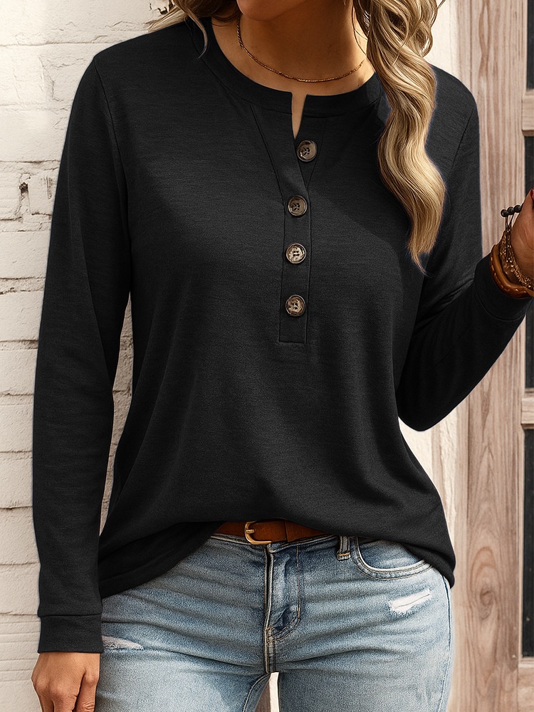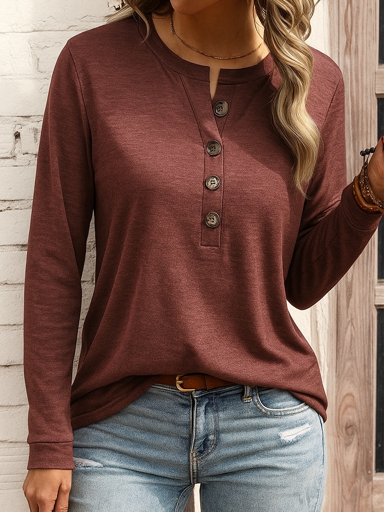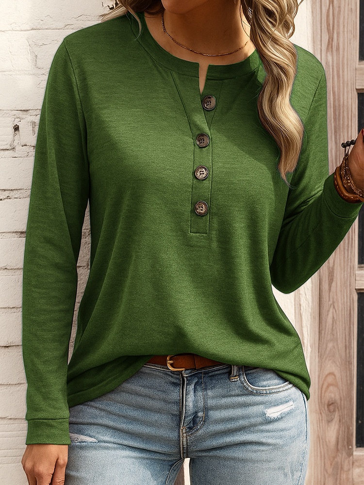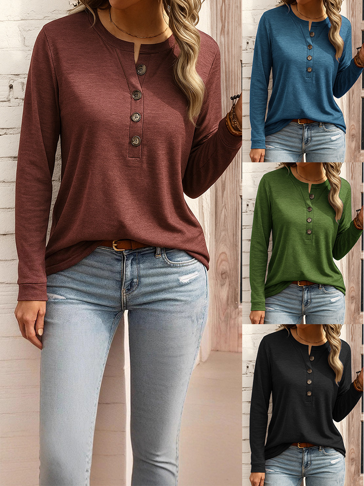 Women's Casual V-neck Placket Long Sleeve Pullover Multi-color Sweater